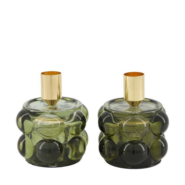 Dinner kaars houder met led glas 8.5x8.5x10.5cm assorti van 2