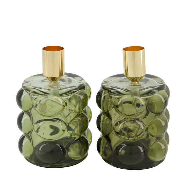 Dinner kaars houder met led glas 8.5x8.5x12.5cm assorti van 2
