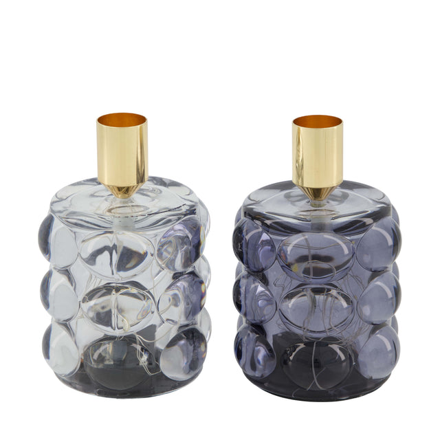 Dinner kaars houder met led glas 8.5x8.5x12.5cm assorti van 2