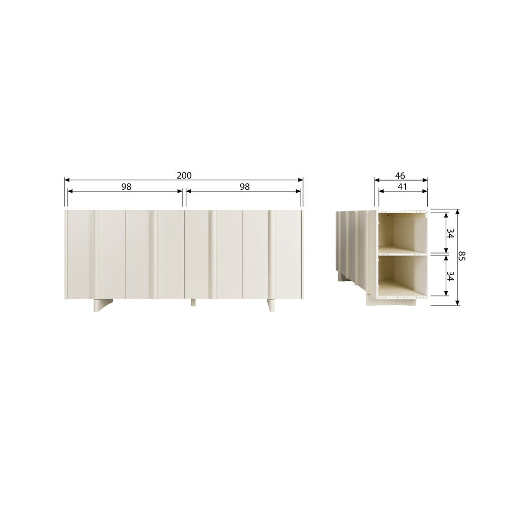 - H 85 cm x B 200 cm x D 46 cm
