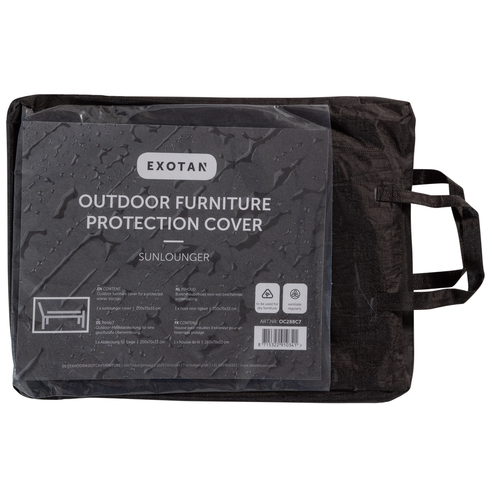 Bescherm jouw outdoor ligbed met deze beschermhoes van het Nederlandse outdoormerk Exotan. De zwarte hoes is gemaakt van sterk materiaal wat niet snel zal scheuren.