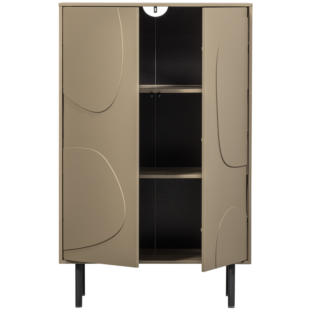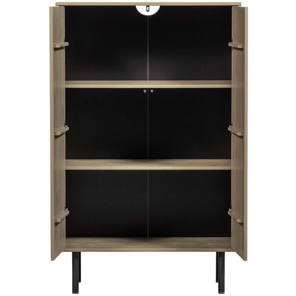 Een clean design, speels houtpatroon en een sprekend kleurcontrast. Dat zijn de kenmerken van deze Cadiz opbergkast uit de collectie van het Nederlandse interieurmerk WOOOD. De bruine afwerking houdt het ontwerp stijlvol en modern met als spannende tegenhanger de stoere, stevige zwarte poten. Het organische decor maakt dat het item speels oogt en zich goed laat gebruiken in een kinderkamer.