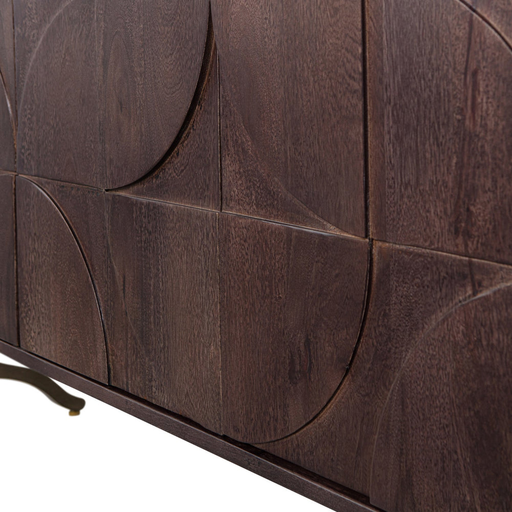 Dit karakteristieke dressoir komt uit de collectie van het Nederlandse merk WOOOD. De warme walnootkleurige finish van het mangohout zorgt voor de sfeervolle uitstraling van het Draw dressoir. Het ludieke potenframe geeft het design lucht en zorgt voor veel stabiliteit. Het 3D-patroon op de deuren geven het item een unieke sfeer.