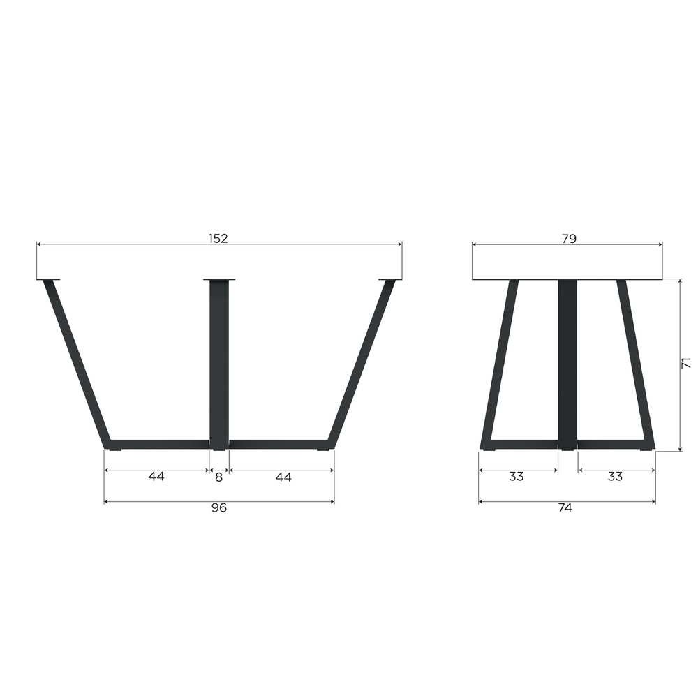 De Drenthe tafelpoot is geschikt voor een Tablo tafelblad met een minimale afmeting van 180 x 90 cm en een maximale afmeting van 240 x100 cm.