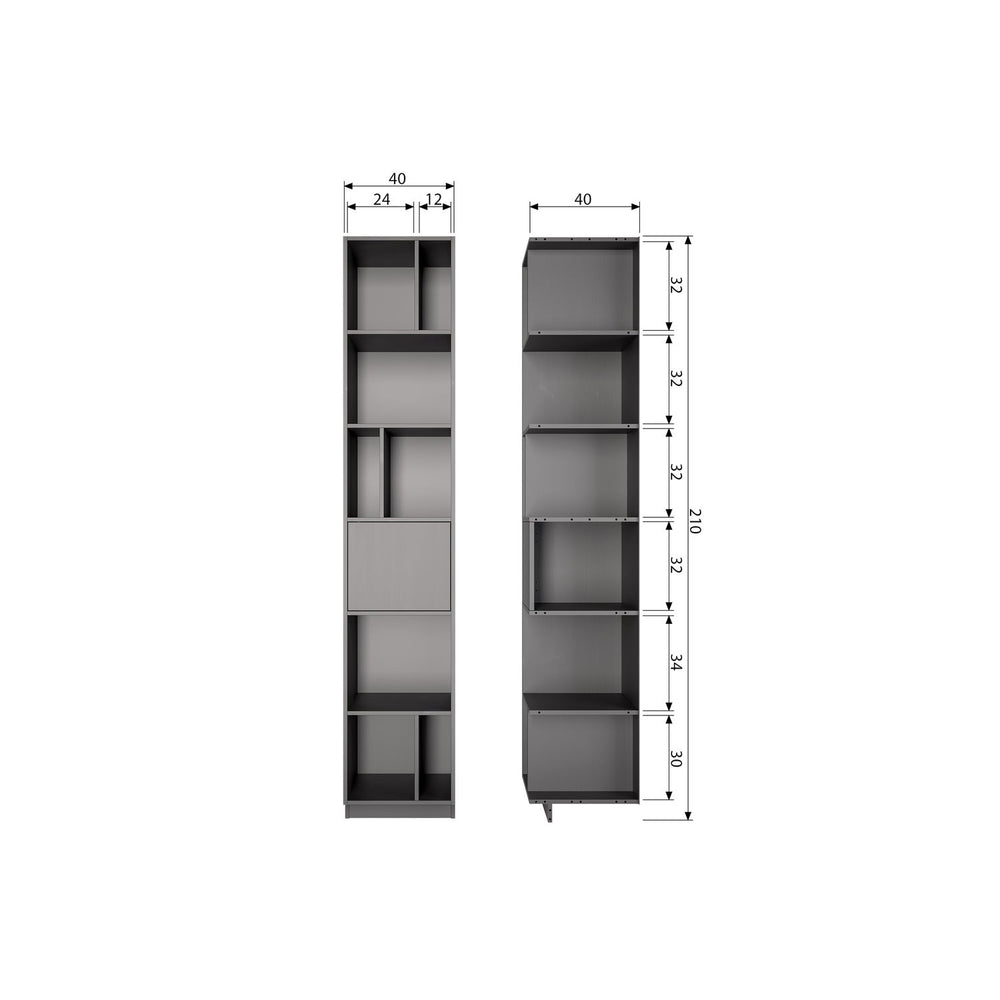 De Finca open vakkenkast is een waar pronkstuk in de woonruimte. De open vakken zijn speels ingedeeld voor het presenteren van jouw mooiste woondecoratie. Het deurtje houdt nog eens een ruime opbergruimte uit het zicht. De vakken hebben verschillende breedtematen en elk een diepte van 37 cm. De onderrand van de vakkenkast laat 7 cm ruimte over aan de voorzijde, hierdoor lijkt het meubel te zweven.