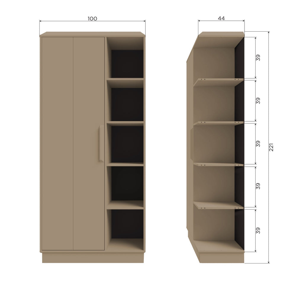 - H 221 cm x B 100 cm x D 44 cm