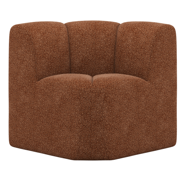 MOJO EETBANK HOEK MET RUGLEUNING WOLLIG ROESTBRUIN