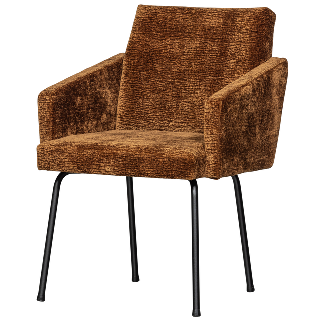 MOUNT EETKAMERSTOEL MET ARMLEUNING 3D CHENILLE MIDDENBRUIN