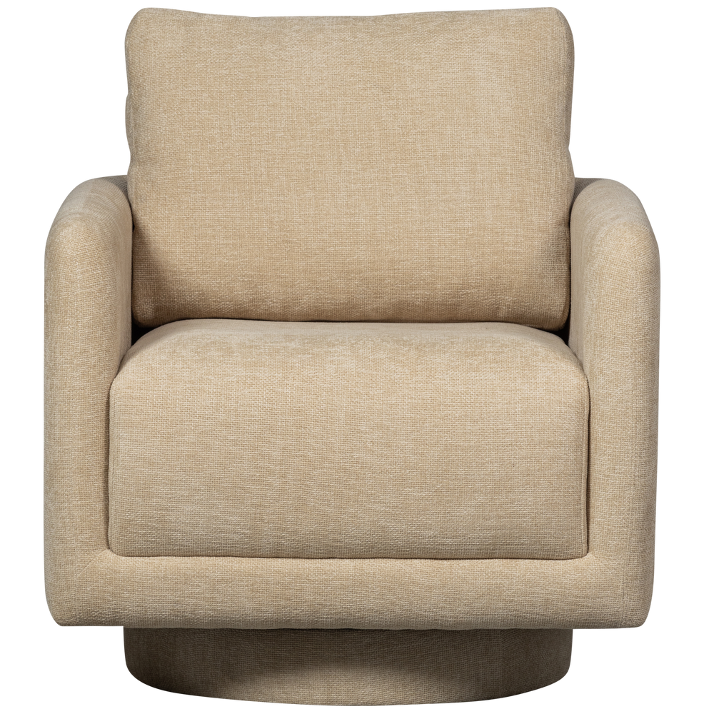 Bold en bulky! Dat is de Oscar draaifauteuil uit de collectie van het Nederlandse interieurmerk WOOOD. Oscar is van top tot teen bekleed met een zachte chenille wat het vierkante design een vriendelijke uitstraling geeft. De draaipoot zorgt voor extra luxueus zitcomfort.