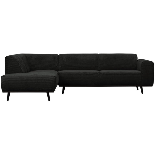 - Luxueus en elegant design - Onderdeel van de bekende Statement-serie - Bekleed met een geweven jacquard (53% polyester / 47% polyacryl) - H 77 cm x B 274 cm x D 210 cm De Statement-serie van het Nederlandse interieurlabel WOOOD wordt gekenmerkt door het elegante, afgeronde design en het zeer hoge zitcomfort. De naam zegt genoeg: een statement maken is precies wat deze zitmeubelcollectie doet. De Statement-serie heeft eindeloze combinatiemogelijkheden, is stoer, puur en tijdloos! Materiaal Statement is opgebouwd uit een combinatie van massief hout, spaanplaat, multiplex, normaal schuim en synthetische watten met een dichtheid van 250 g/m3 en een zigzag vering. De zitting bevat een Bonell vering, normaal schuim en synthetische watten met een dichtheid van 250 g/m3. De rugleuning bestaat uit een mix van polyurethaan schuim met een dichtheid van 23 kg/m3. Deze Statement is bekleed met een platte ribstof. Onze Brama ribstof geeft een subtiele glans aan onze collecties. Deze platte ribstof voelt zacht aan en heeft een luxueuze kleurnuance. Door de unieke jacquard weefwijze krijgt de stof een volle structuur en een fluweelachtige uitstraling. Vanwege de chenille garens heeft de stof een uiterst zachte grip maar is er kans op een lichte zitspiegel op de favoriete zitplaatsen. De platte ribstof is geweven met 53% polyester en 47% polyacryl garens. Met een Martindale van 25.000 zal de stof niet snel scheuren of lussen. Afmetingen - Hoogte: 77 cm - Breedte: 274 cm - Diepte: 210 cm - Zithoogte: 45 cm - Zitbreedte: 218 cm - Zitdiepte: 63/177 cm - Rugleuninghoogte: 77/32 cm - Armleuninghoogte: 65 cm - Armleuningbreedte: 24 cm - Poothoogte: 15,5 cm (berkenhout) - Draagkracht: 90 kg per zitplaats - Gewicht: 91,6 kg Onderhoud Leg bij vlekken een vochtige handdoek op de vlek, op deze manier absorbeert de handdoek de vlek. Als de handdoek verzadigd is, het proces herhalen tot de vlek niet meer afgeeft. Laat de laatste handdoek op de vlek liggen tot de handdoek is opgedroogd. Let op: wrijving zorgt ervoor dat de vlek in de bank trekt. Wrijven is daarom zeer afgeraden. Borstel de stof wekelijks met een fluweelborstel, met de vleug mee zorgt voor een glanzend resultaat. In de basis raden wij het impregneren van onze gestoffeerde meubelen af. Mocht dit echter wel gewenst zijn, test het impregneermiddel dan vooraf op een onzichtbare plaats van de stof. Levering Dit artikel wordt in twee pakketten geleverd met een duidelijke montagehandleiding. De elementen zijn eenvoudig aan elkaar te verbinden middels beugels. Plaats voor het beschermen van harde vloeren viltglijders aan de onderzijde van de poten.