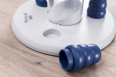 De Trixie Gambling Tower 27X25 cm is een intelligentiespel voor de hond, een toren met schijven en kegels waar de hond snacks uit moet zien te krijgen.