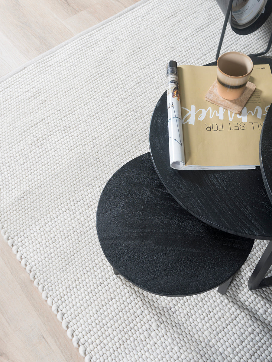 Vloerkleed Pebbel van het merk Veer Carpets is een prachtig handgeweven vloerkleed, gemaakt van een combinatie van wol en viscose. Pebbel is een modern vloerkleed met een lage pool en een kelim-band afwerking. Door de mooie neutrale kleur en de natuurlijke materialen heeft Karpet Pebbel de uitstraling van een design vloerkleed. Leverbaar in de volgende maten: ø120 cm, ø160 cm, ø200 cm, 160 x 230 cm, 200 x 280 cm en 240 x 340 cm. Een wollen vloerkleed is makkelijk te onderhouden, omdat wolvezels geen vuil aantrekken. Goed onderhoud zorgt voor een langere levensduur van het vloerkleed. Tips voor het onderhouden van een wollen vloerkleed: - Het is belangrijk om het vloedkleed te stofzuigen, dit is direct mogelijk vanaf de eerste dag. Let op! Dit kan alleen met de gladde stofzuigermond op een lage zuigstand (zonder roterende borstel). Zo voorkom je dat restjes stof zich hechten en uiteindelijk gaan ophopen tussen het materiaal en kunnen de vezels zichzelf herstellen. - Wol is een natuurproduct, bespuit het vloerkleed ieder kwartaal licht met koud water om de wol in goede conditie te houden. - Om spoorvorming te voorkomen raden wij aan het karpet 1 keer in de 3 maanden 180 graden om te draaien. Daarnaast is het ook goed om het vloerkleed een aantal keer per jaar buiten uit te kloppen. Bij dit vloerkleed raden wij een anti-slip onderkleed aan. Voorkom op deze manier val- en glijpartijen in de woonkamer, slaapkamer of in de kinderkamer! De voordelen van het Antislip Ondertapijt: - Het vloerkleed blijft op zijn plaats liggen - Het voorkomt bobbels in het vloerkleed - Het vloerkleed is gemakkelijker te stofzuigen - Het verlengt de levensduur van het vloerkleed